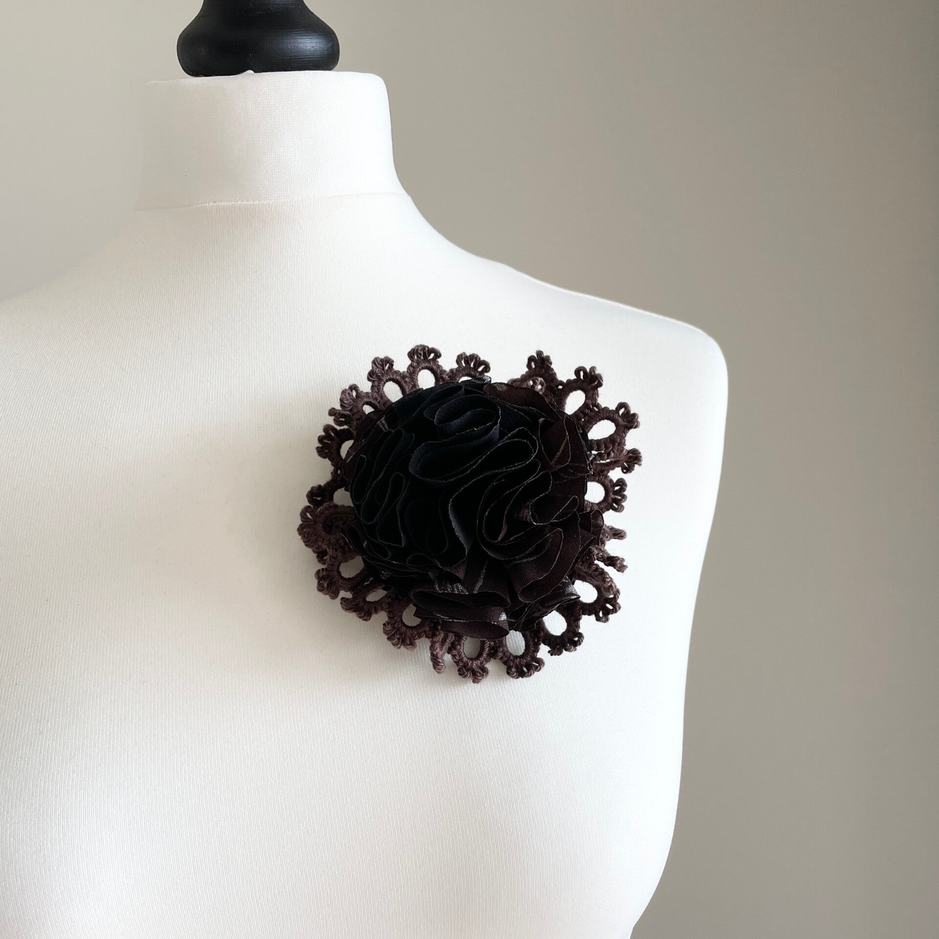 Fashion flower choker with handmade lace details.