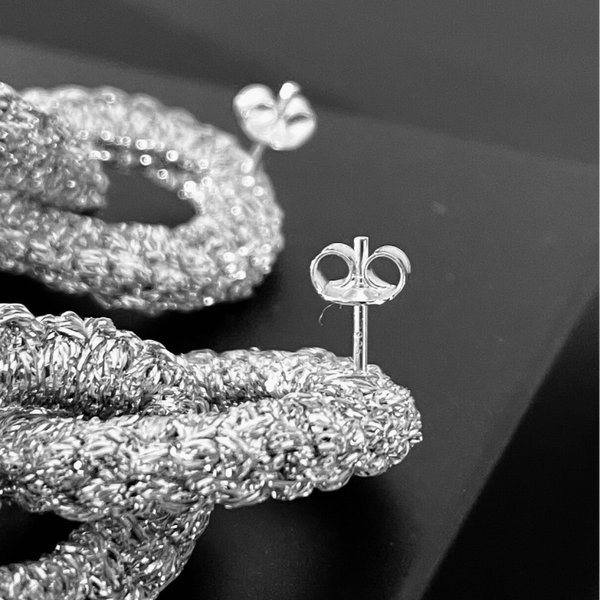 Beautiful handmade lace is attached to the 925 silver sterling earring base.