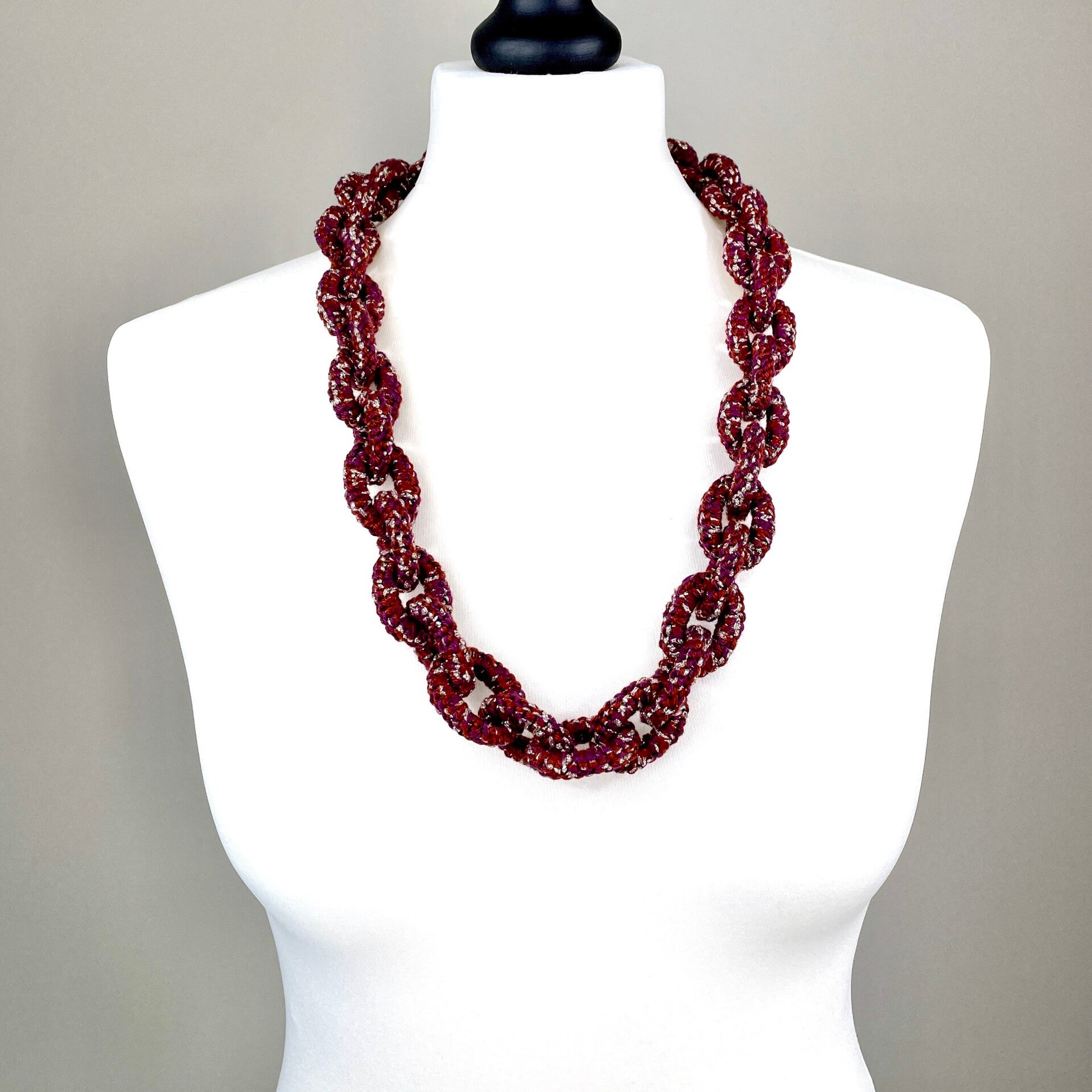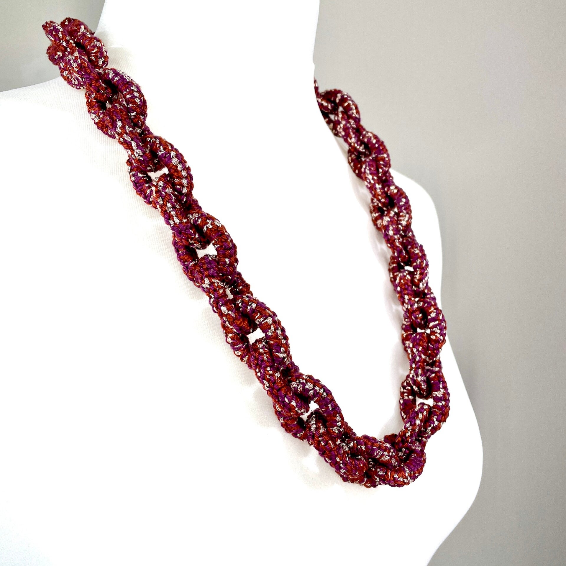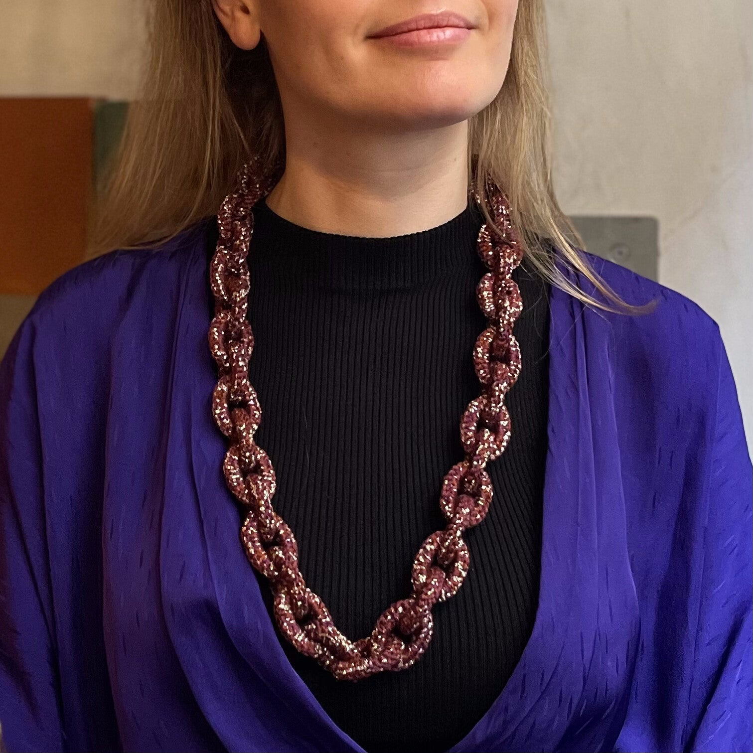 - Cotton yarn in aubergine and rust brown colours, made in Spain