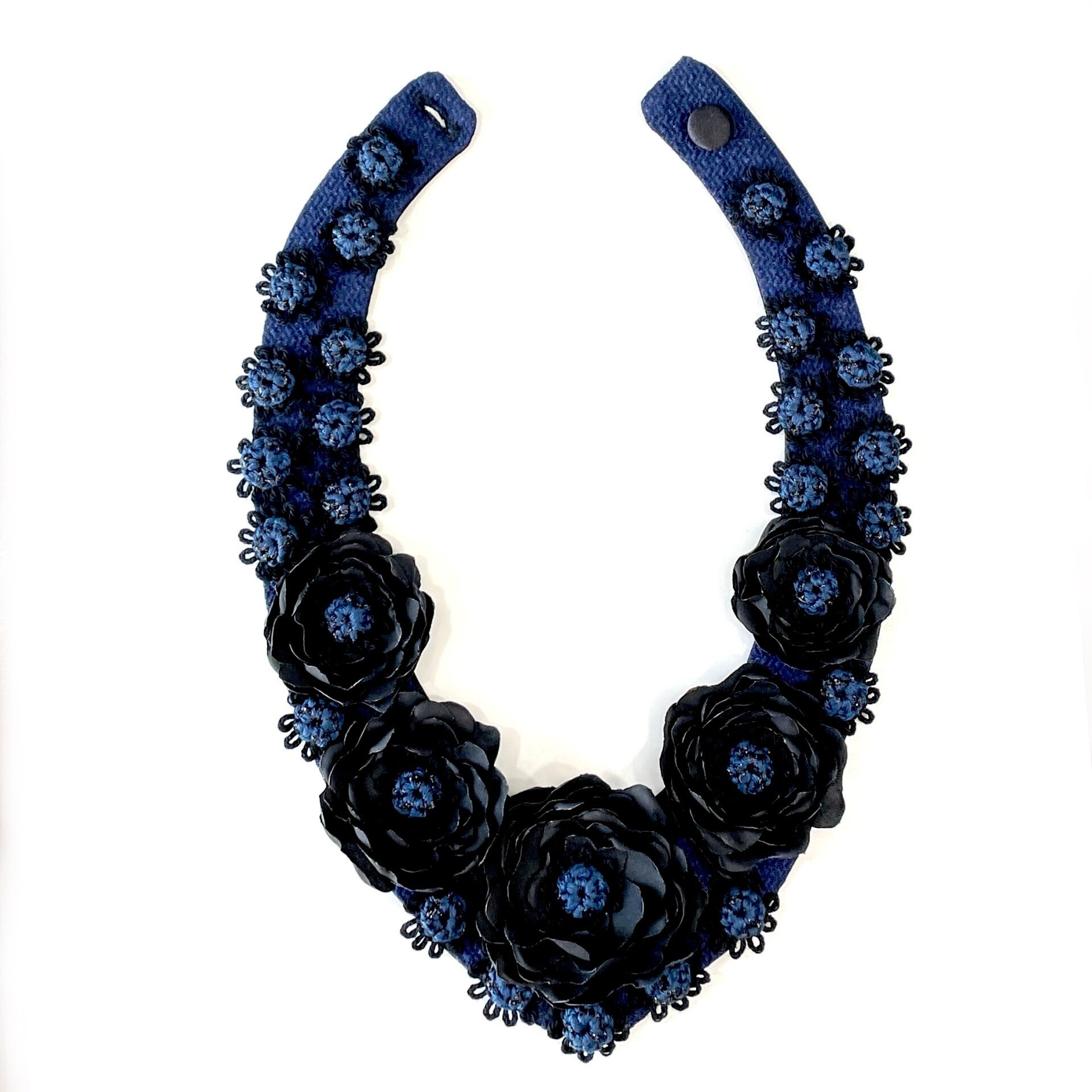 Statement necklace with the handmade lace flowers.