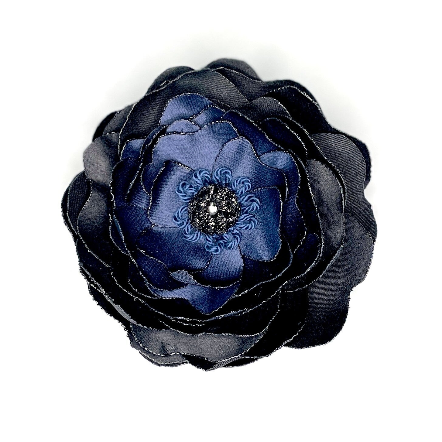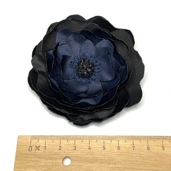 - Upcycled satin fabric in dark blue and black