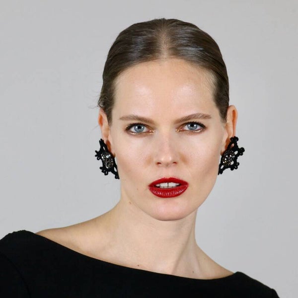 Stylish black handmade lace attached to the handcrafted leather and 925 silver sterling earring base.